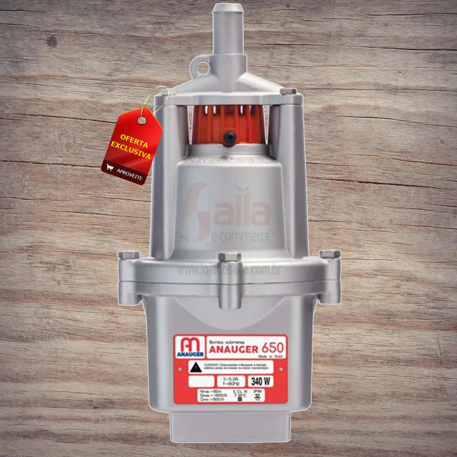 Bomba D’água Elétrica Submersa Vibratória 650 220V 340w Anauger Água Limpa Descrição do Produto O modelo Anauger 650 voltou, com novo design, nova tecnologia e performance superior. Anauger 650 5G: projetada para atender às necessidades básicas de água para uma residência. Adquirindo a Anauger 650 5G você terá acesso aos benefícios da marca líder de mercado com baixo consumo de energia e a garantia Anauger; Bomba submersa vibratória para poço Potência 340 Watts; Elevação máxima 60 metros Bomba para poço com diâmetro superior a 7 polegadas (180 mm); Utilizada no abastecimento doméstico, para pequenas irrigações e criação de animais. Dados Técnicos Vazão máxima: 1.600 litros/hora Potência: 340 W Altura manométrica máxima: 60 m (elevação) Temperatura máxima da água: 35 oC Bombeamento de água limpa Tensão: 220 V Frequência: 60 Hz (50 Hz sob consulta) Saída Ø 3/4¿ polegada Tipo: bomba submersa vibratória. Resistência a umidade: IP68 Isolação das bobinas: Classe H Proteção contra choque elétrico: Classe II Dimensões: altura = 290 mm / Ø 155 mm.