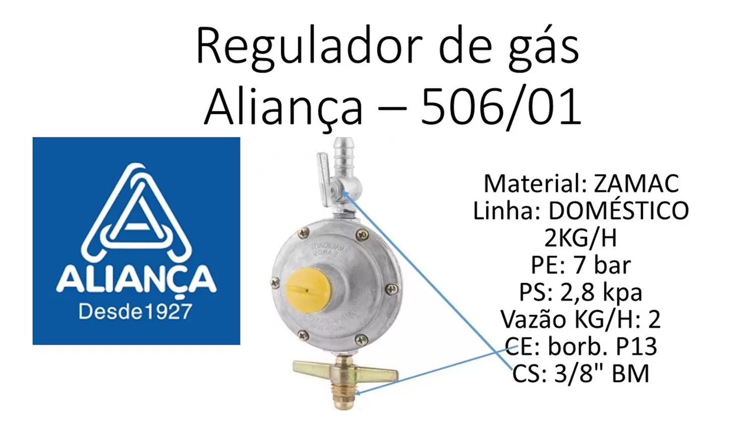 Regulador de Gás Válvula Aliança 506/01 Fogão 6 Bocas